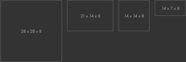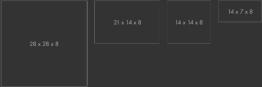 Hinweis: Jede Lage besteht aus 8 Steinen 14 x 7 cm, 24 Steinen 14 x 14 cm, 16 Steinen 21 x 14 cm und 1 Stein 28 x 28 cm.